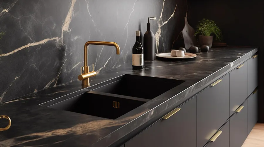 For a sleek and sophisticated look, you can’t go wrong with classic black granite. With its deep, rich colour and subtle flecks of silver and gold, black granite adds a touch of elegance to any kitchen or bathroom. Pair it with white cabinets for a timeless monochromatic look, or contrast it with light wood or stainless steel accents for a modern twist on traditional style.